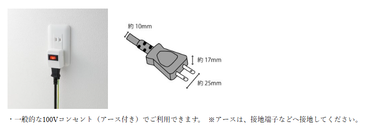 | 2か所の電源スイッチ 製品本体とプラグ部分の2か所にスイッチが付いています。 |