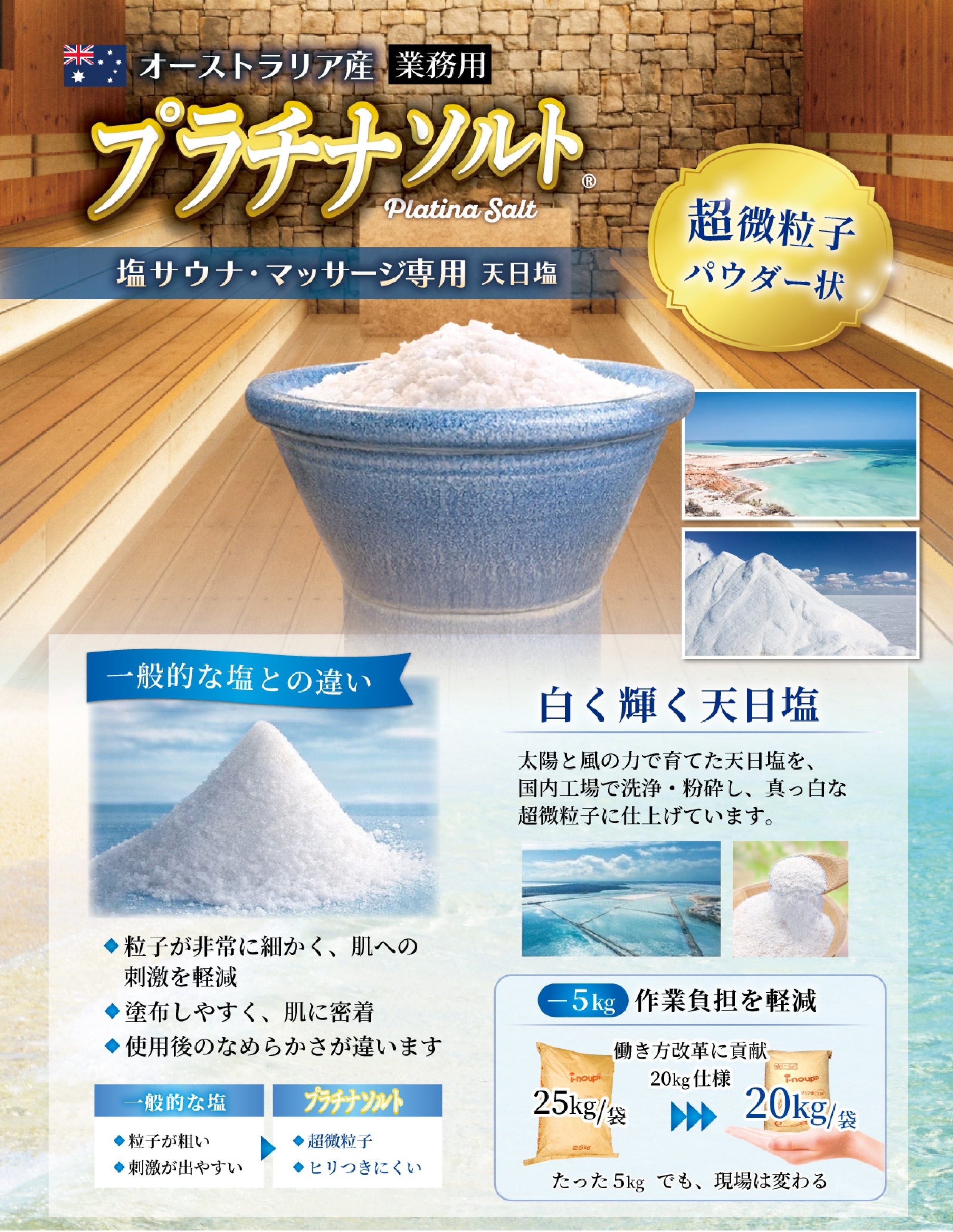 【塩サウナ用マッサージソルト】プラチナソルト(パウダー) 20kg 10袋~